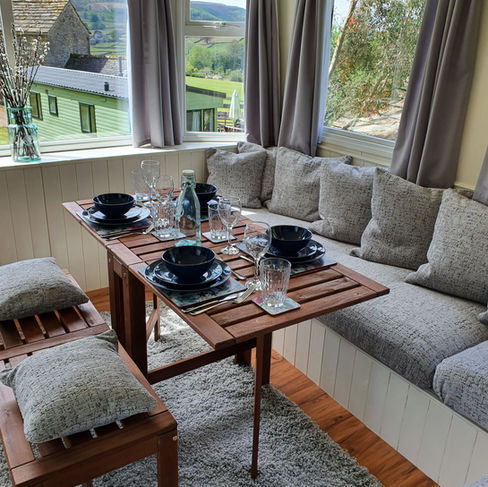 Fell view is in the middle of the garden with large decking and beautiful views across the hills. There are two bedrooms, a full size double and a single with one small single bed. The fully equipped kitchen is perfect for longer stays and comfortable lounge dining area has a 32" smart TV with access to Netflix and catch up TV. The lounge diner is spacious and filled with light from the large window and the decking gets sun all day